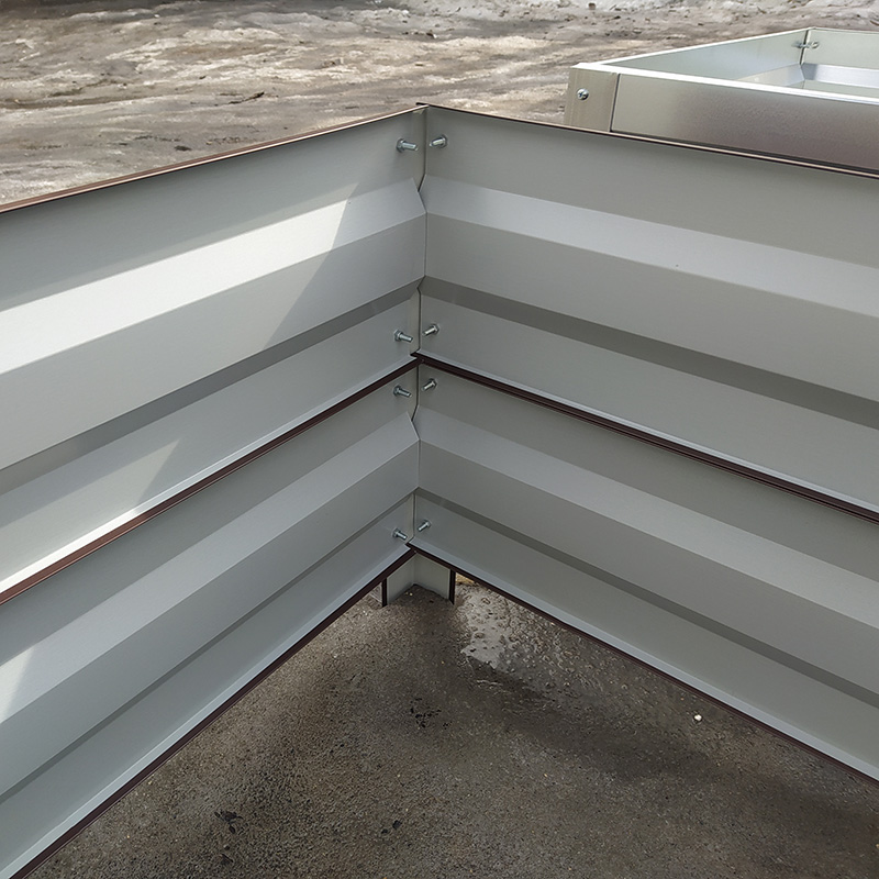 Все острые края завальцованы, что обеспечивает безопасное использование. Отверстия уже пробиты на высокоточных автоматизированных линиях. Легкая сборка на болтах.