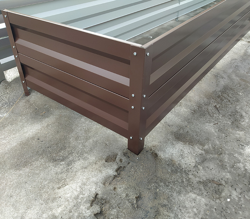 Грядки изготовлены из оцинкованного металла с полимерным покрытием толщиной 0,5 мм. Панели усилены 16 ребрами жесткости. Планка-стяжка через каждый 1 метр обеспечивает сохранность конструкции на долгие годы. Благодаря уникальной технологии, срок службы наших грядок составляет более 10 лет.